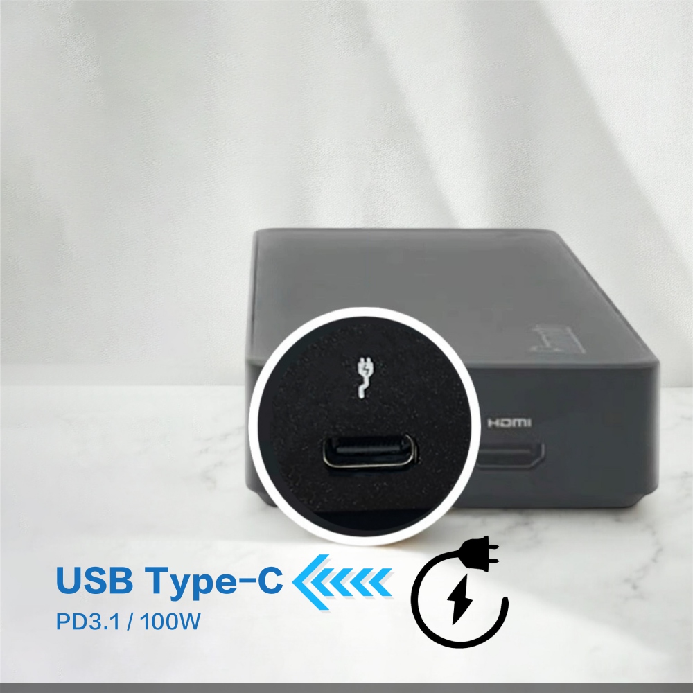 透過USB Type-C的ALT mode,將聲音影像輸出到單一個顯示器上,並且透過按鍵在兩台主機之間做切換,同步可以透過USB Type-C 向上對主機充電,充電功率最高可以達到85W。